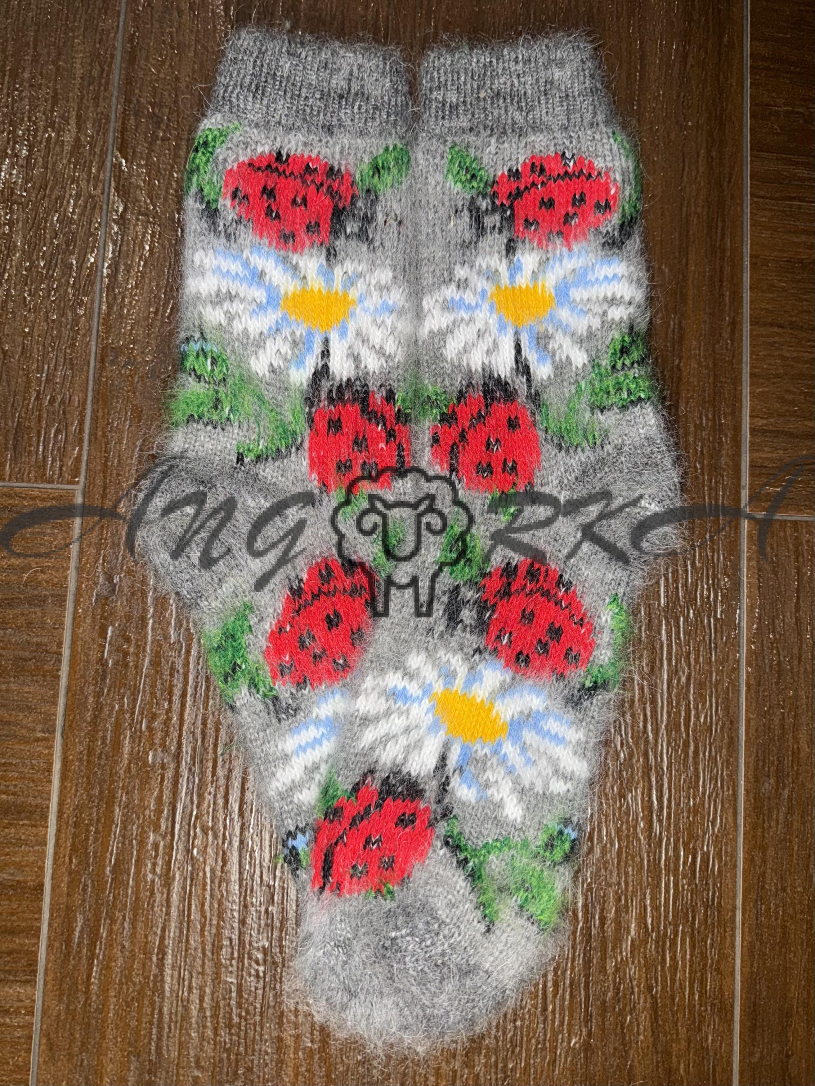 Жіночі шкарпетки з козиного пуху з ромашкою на сірому