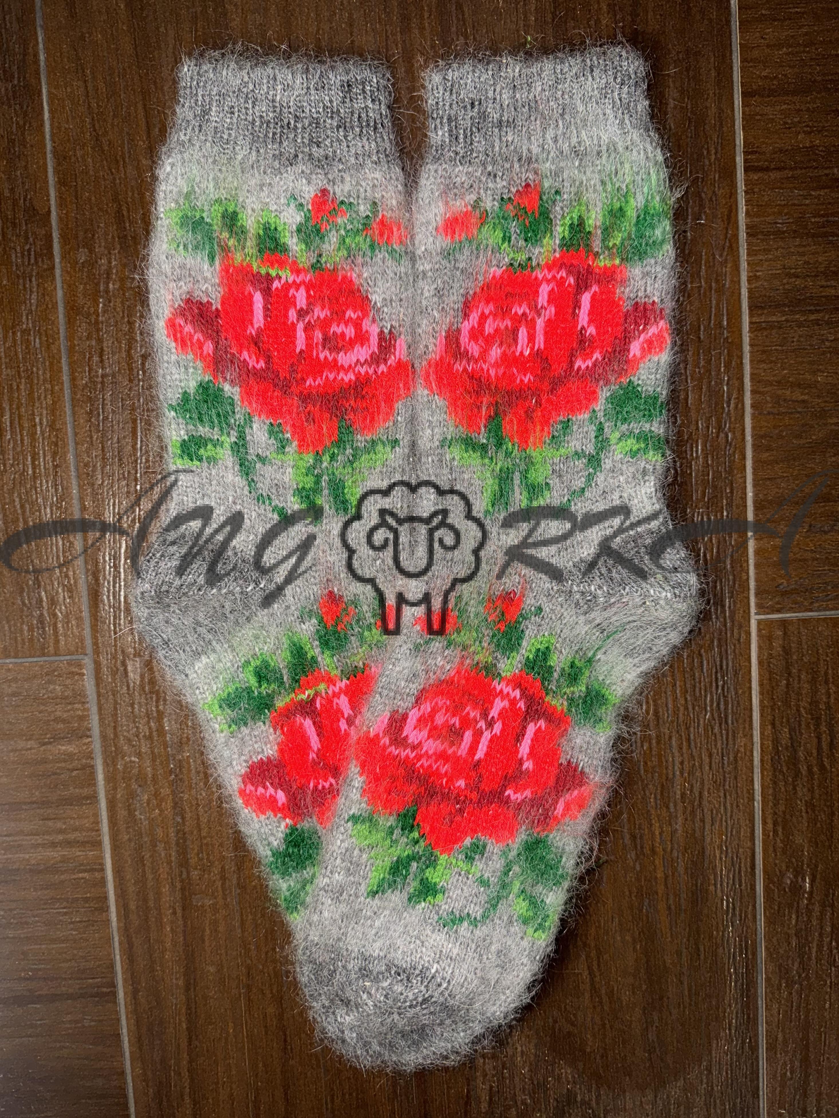 Жіночі шкарпетки з козиного пуху з розою на сірому